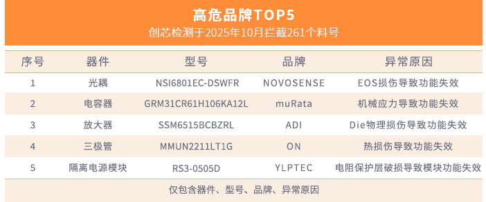 为了使更多客户了解异常物料信息,创芯检测对外发布元器件异常品质分析报告,希望能帮助您预警风险,确保安心购物,避免购买不合格器件。