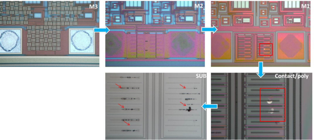 芯片去层(delayer)至SUB→OM检视拍摄→SEM电子及二次电子扫描